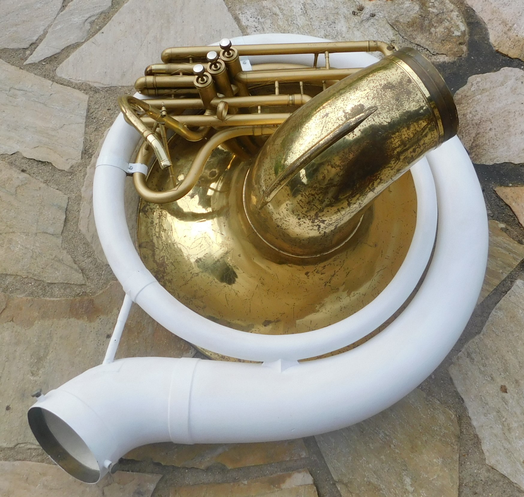 | | Soubassophone Conn fait à Elkhart USA modèle 14 k en laiton verni pour la pistonnerie, les coulisses et le pavillon ; et en fibre de verre pour le corps - entièrement révisé, propre et fonctionnel - pas d'usure aux pistons, pas de fuite - excellent son - poids total 9.3 kg | |